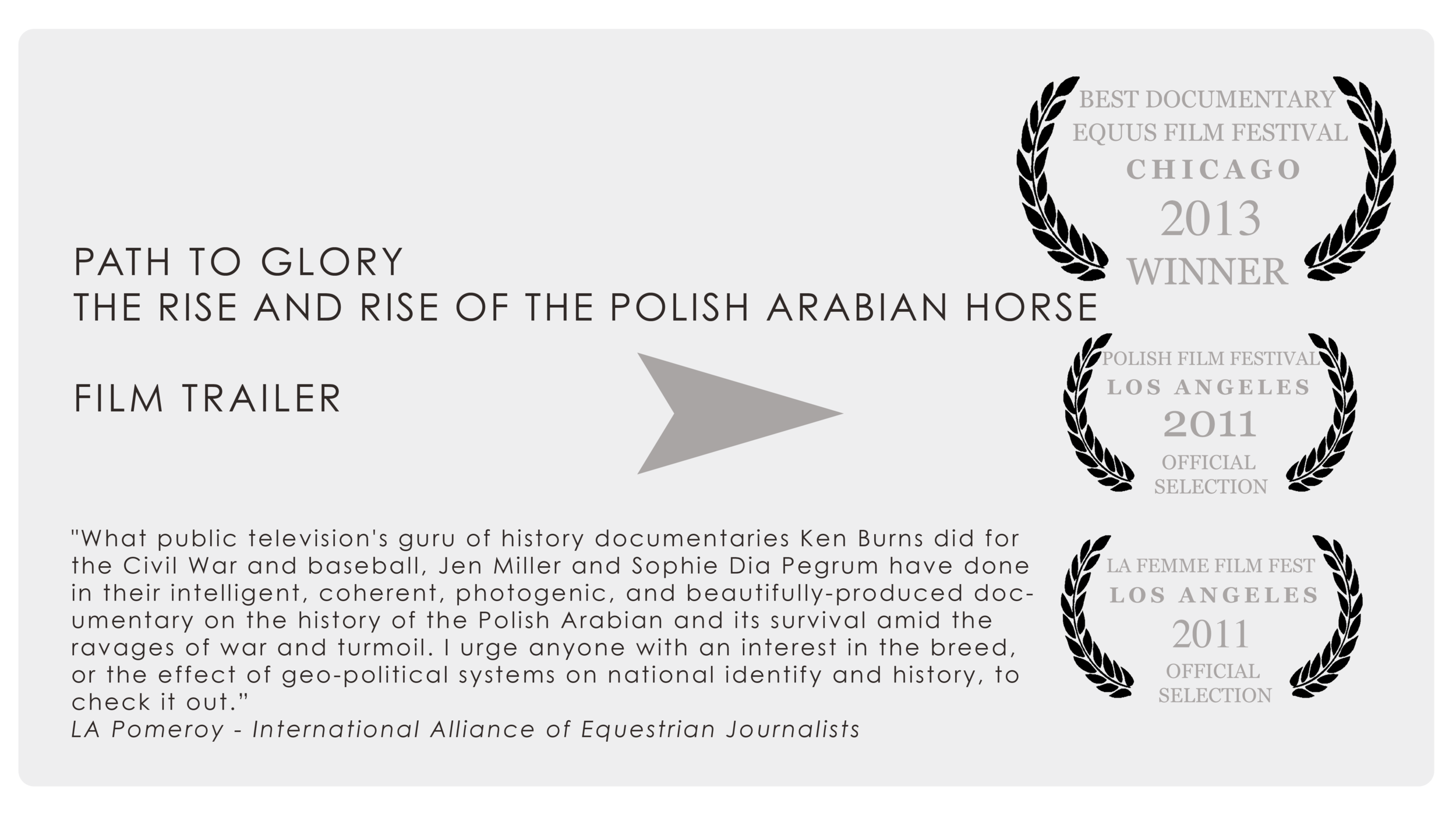 “What public television’s guru of history documentaries Ken Burns did for the Civil War and baseball, Jen Miller and Sophie Dia Pegrum have done in their intelligent, coherent, photogenic, and beautifully-produced documentary on the history of the Polish Arabian and its survival amid the ravages of war and turmoil. I urge anyone with an interest in the breed, or the effect of geo-political systems on national identity and history, to check it out.